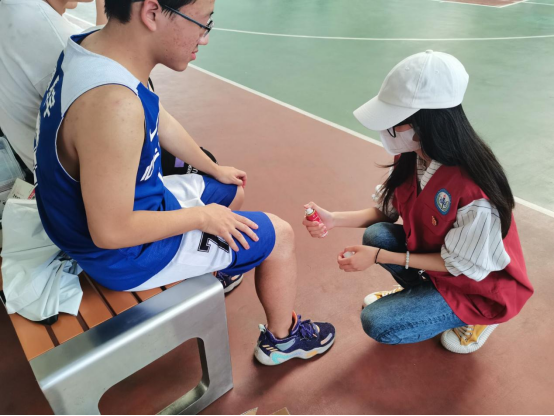 学生第一党支部通过“党员服务岗”,在必赢第38届篮球赛期间积极开展急救保障、服务同学等志愿服务工作。在篮球赛进行期间,志愿者们分成十一个双人小组进行轮班服务,其中每个小组均包含一名持有红十字救护员证的成员,以便发生紧急情况时能有更专业的处理;同时每个小组提前准备好了应急物资和急救用品,准时到场,坚守岗位,在处理紧急状况发生的同时,志愿者们为赛场上的队员们加油呐喊,拍照记录,充分展现了党员的服务意识和奉献精神。