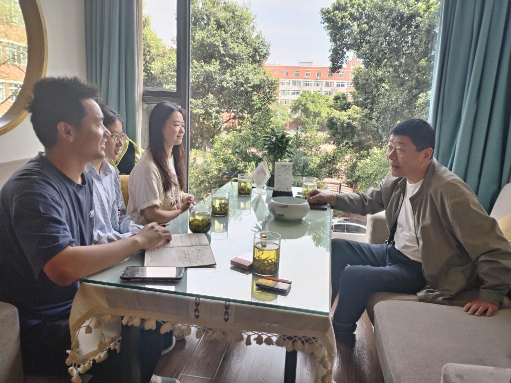 为学习贯彻新修订的《中国共产党纪律处分条例》,切实推进党纪学习教育走深走实、见行见效,5月5日,437ccm必赢国际官方网站党总支副书记郑崛村带领学生第一党支部部分党员,拜访老党员、退休教师张宗诚老师,开展了“读懂中国”活动,并进行了党纪学习教育。