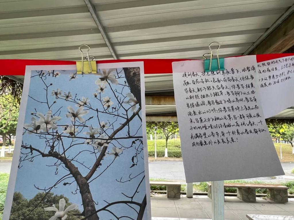 活动开始,同学们积极地前往作品收集地点将自己“留下”的春色和感想进行提交。收集工作结束,工作人员筛选出了优秀的摄影作品进行展示,其中有娇艳欲滴的桃花夹带着含苞的骨朵;也有优雅沉静的白玉兰,袅袅身姿,风度翩翩;也不乏开春发新芽的柳树和桃树,生机勃勃,春意盎然。一幅幅春景图片陪着一批又一批前来观赏“春天”的同学,在初春的习习微风中,将这个美丽的三月,留在更多人的心间。三个小时的活动圆满结束,参与人员们依旧兴致不减,在展览作品中细心选取了自己心怡的图片,每一位收获新了“春景”的同学脸上都洋溢着灿烂的微笑,也将这个春天的美好,送进了更多同学的心里。