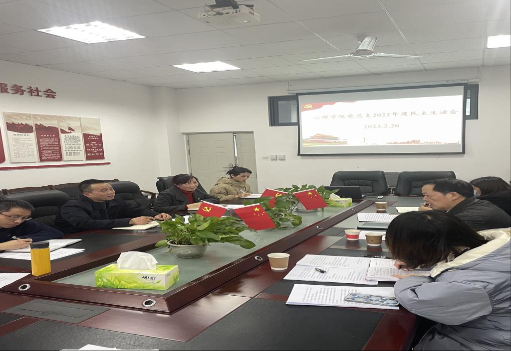 2月20日下午,心理学院领导班子召开2022年度民主生活会。学校党委副校长唐平同志莅临会议,对心理学院民主生活会进行指导,校党委组织部唐文静同志、校纪委办公室江凌凌同志、学院组织员列席会议。学院党总支副书记郑崛村主持会议。