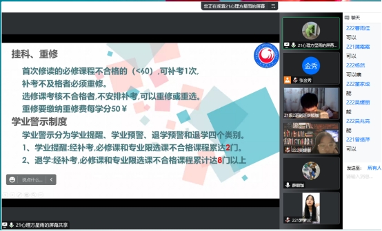 2021级2班教务代表沙弘威给同学们讲解了教务系统和超星学习通的使用方法,希望学弟学妹在家也能学好网课。