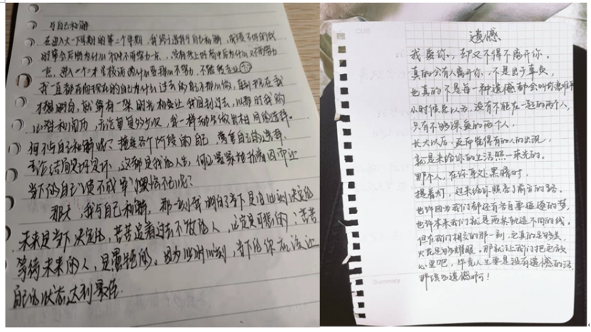 活动期间,围绕“与自己和解”为主题,同学们写出了自己内心埋藏已久的故事。其中有打破进入大学之后的迷惘,有重新踏上征程的初心,也有将心中“藏匿”许久的喜欢大声说出的勇气,还有接纳不完美自己的决心。同学们在字里行间讲述着自己成长的故事,让人不禁回想起自己的那段峥嵘岁月。