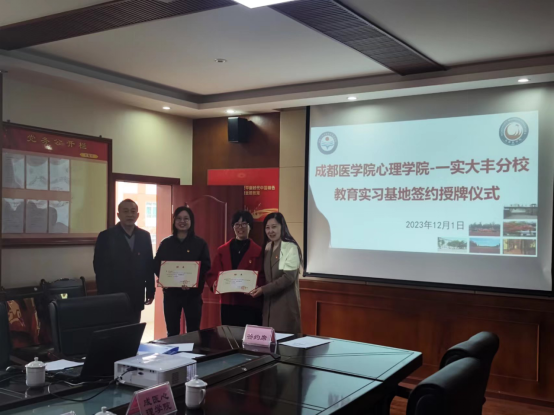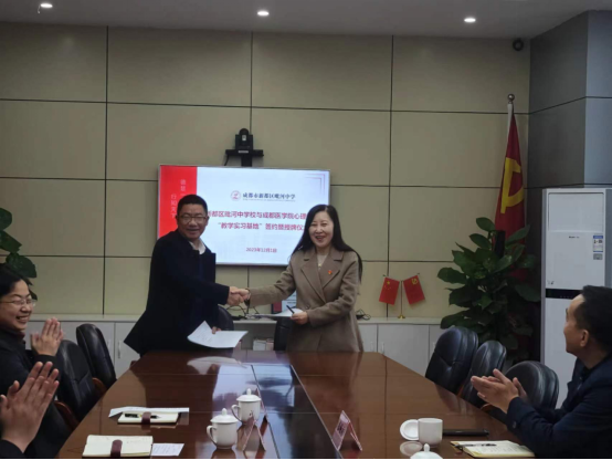 为深入贯彻落实《全面加强和改进新时代学生心理健康工作专项行动计划(2023-2025年)》指示精神,为新都区中小学学生心理健康保驾护航,同时强化437ccm必赢国际官方网站社会服务工作特色,12月1日上午,举行437ccm必赢国际官方网站专属实习基地毗河中学、大丰中学签约仪式,学院党政领导、毗河中学校领导及相关工作人员、大丰中学校领导及相关工作人员参与仪式。