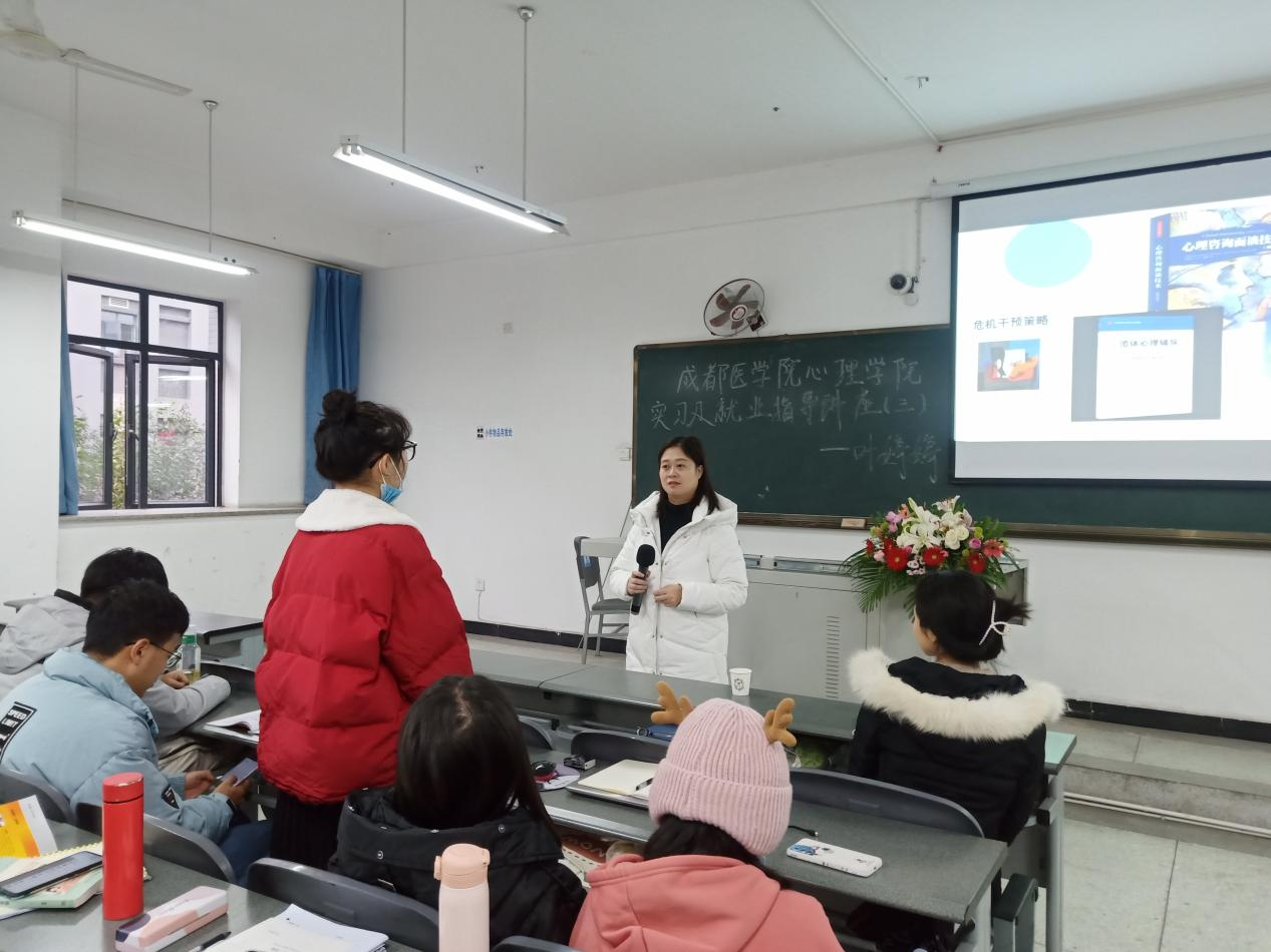 为了帮助同学们更好地规划职业生涯和人生发展道路,437ccm必赢国际官方网站于12月10日上午9点在博学楼B211开展了第三期的实习就业指导讲座。此次讲座特邀四川省成都市三原外国语学校心理健康教育叶婷婷老师主讲,437ccm必赢国际官方网站辅导员张金秀出席本次讲座。