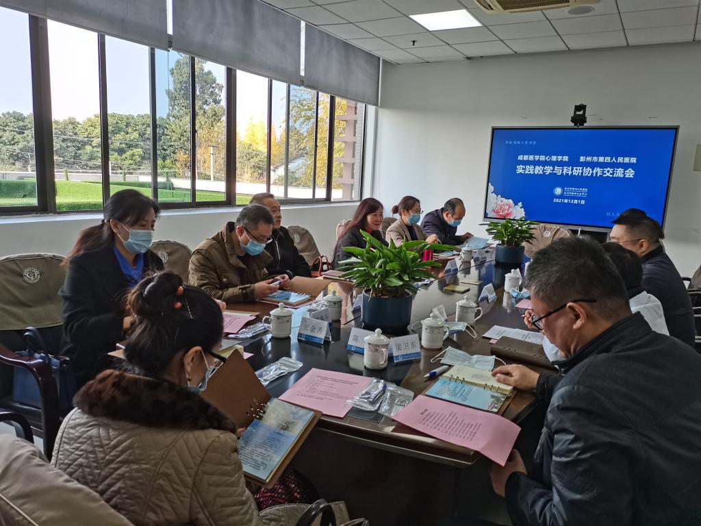 在彭州市精神卫生中心党支部书记宋权的带领下,我院教师代表就彭州市精神卫生中心的科室设置、设施设备、作业疗法等基本情况进行了参观考察。随后,在座谈会上,彭州市精神卫生中心党支部书记宋权进一步深入介绍了院区的建设与发展,并表示促进心理健康离不开心理咨询从业者队伍的壮大,欢迎我院师生前往交流学习。我院党总支书记郑崛村也就我院专业发展与实习基地建设等情况进行了介绍说明,并表示希望能够以实习促学生就业、以合作促双方发展。最后,双方在教学、科研、实习和临床医疗等方面达成了合作共识。