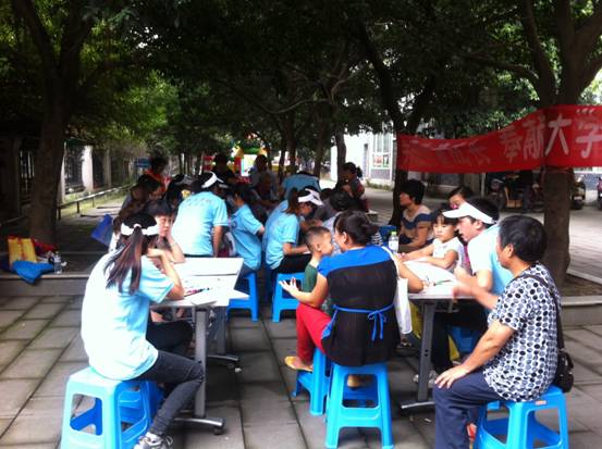 2013年9月14、15日,心理学志愿服务队赴青羊区同德社区与锦江区塔子山社区开展向日葵图书馆、流动儿童“绘画游戏”活动。此次活动由437ccm必赢国际官方网站心理学系、向日葵青少年服务中心及当地社区工作人员联合主办。