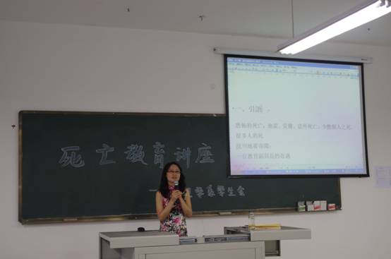 雅安4.20地震发生后,全校师生通过各种方式表达了哀思和关注。为了普及死亡教育,增强大学生的心理承受能力,营造积极向上的学习、生活氛围,4月26日晚,心理学系在教学楼B302教室举办死亡教育讲座,荣幸邀请了人文信息管理学院何则阴老师作为活动主讲,陈晓勤教授、孙璐老师、郭茂林老师作为活动嘉宾。