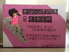 宣传部是隶属于学生会的一个不可或缺的重要部门。负责的宣传工作主要包括:宣传策划,设计出版海报、展板,黑板字及各种多媒体宣传工作。 宣传部每年绘画有海报展板一百余幅,海报设计主要以每次活动的主题为基准,以突出活动特点,突出时间地点,新颖醒目为特色,画风清新,版面设计有序,以下就是宣传部海报及展板作品展。